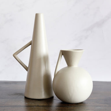 Reactive glazing in the perfect neutral taupe tones featuring an intriguing pitcher silhouette. Display-worthy on its own, the ceramic vessel grace...